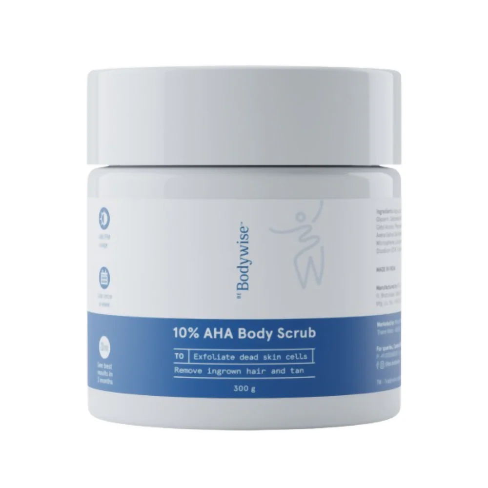 Reveal smoother, brighter, and healthier-looking skin with BeBodywise 10% AHA Lactic Acid Body Scrub, a dermatologist-developed exfoliating formula created to target rough texture, dullness, strawberry skin, and pigmentation. This advanced body scrub combines the powerful exfoliating action of 10% Lactic Acid (AHA) with gentle physical exfoliants to deliver deep yet skin-friendly exfoliation, making it the ideal solution for dry, bumpy, or uneven skin.